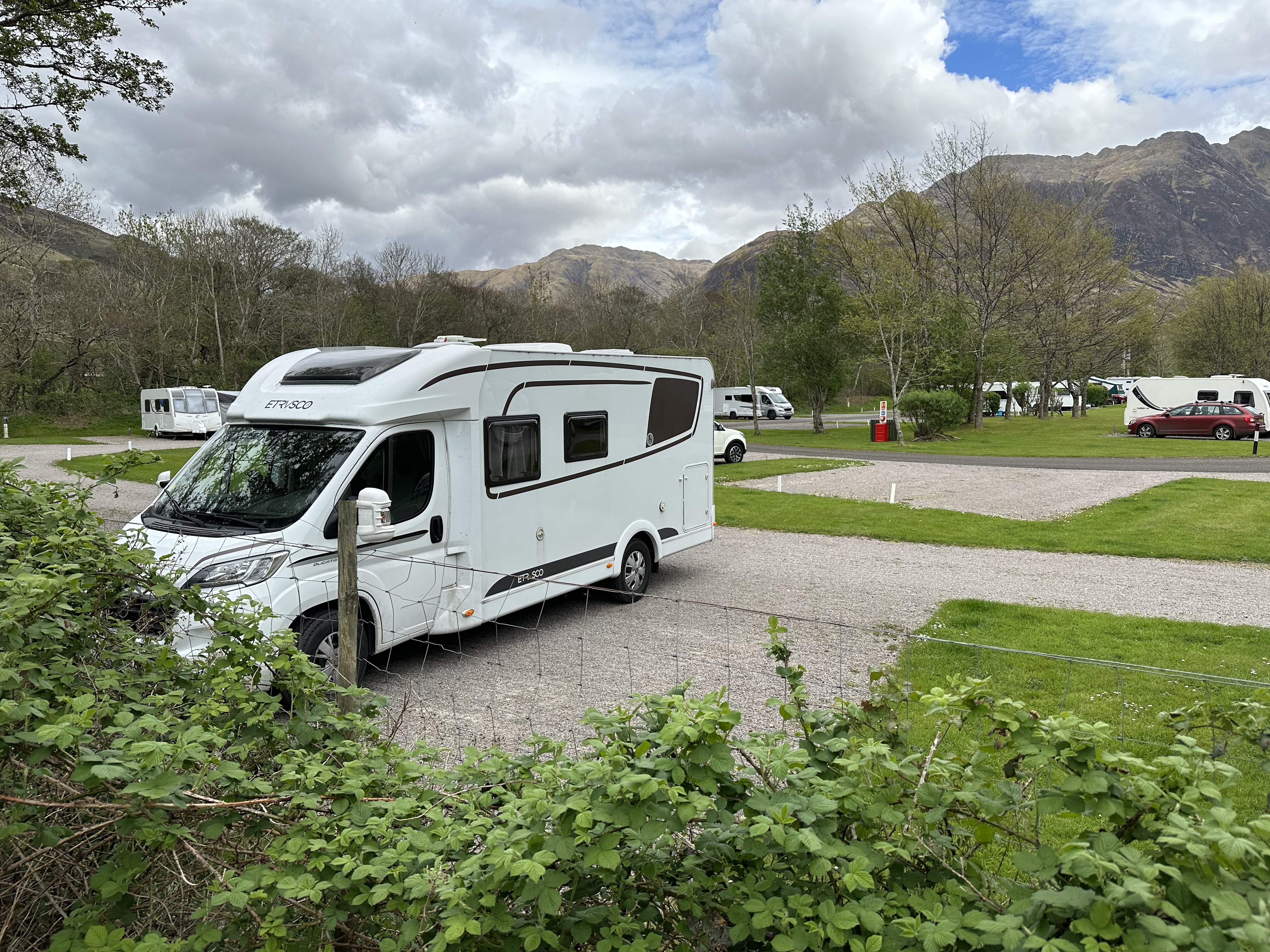 Fort William ist ja das westliche Ende (oder der Anfang, mir egal) des Great Glen und da es ja noch weiter Richtung Norden gehen sollte, führte uns der Weg auch ein paar Meilen am Great Glen antlang, allerdings nicht bis zum Loch Ness (langweilige Riesenpfütze und das Ungeheur sehen immer nur Besoffene). Wir bogen statt dessen in Richtung Isle of Skye ab und gelangten schließlich (noch ein paar Meilen vor dem Eilean Donen Castle) zum Campingplatz des Tages.
